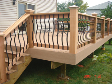 | For frequently Asked Questions About Treated Wood Click on this site----> http://www.beanteam.com/faq2.html FAQs about TimberTech? And if you need more information? See the top 5 reasons to choose TimberTech composite decking and learn how TimberTech can save you time and money in the long run compared to traditional wood decks. ![]() ![]() TimberTech® is a leading manufacturer of low-maintenance, high quality composite Decking and Railing Solutions. Made from reclaimed wood fibers and pure plastic resins, TimberTech® composite decking and railing is a revolutionary alternative to traditional wood decks that offers a skid-free, splinter-free surface that doesn't need painted, stained or sealed. Does TimberTech® have a warranty? Yes. TimberTech® warrants to the original consumer purchaser that, for a period of twenty-five (25) years from the date of original consumer purchase, under normal use and service conditions, TimberTech® Decking and Railing shall be free from material defects in workmanship and materials, and shall not check, split, splinter, rot or suffer structural damage from termites or fungal decay. Does TimberTech® Decking come in any colors? TimberTech® Floorizon, TwinFinish and 2x6 Planks come in Cedar, Grey and Redwood. TimberTech® Earthwood Planks come in Tropical Rosewood, Tropical Teak and Tropical Walnut. TimberTech®'s5/4 Plank is available in Grey only. Does TimberTech® Railing come in colors? Yes.TimberTech®'s Ornamental Rail System is available in Cedar, Grey, Redwood and Whitesand. TimberTech® RadianceRail comes in a Coastal White and Classic Black. Will TimberTech® Decking and Railing colors fade? Yes. Most materials exposed to UV and weathering will fade. TimberTech® decking and railing solutions are blended with high-quality raw material and UV-inhibiting pigments to produce products consistent in color. Because of the quality of material used, most TimberTech® decking and railing products fade less than other composites available. What effect does heat have on TimberTech® products? The effect that heat has on TimberTech® products is similar to the effect it has on a wood deck. All TimberTech® colors were developed with reflective, inorganic pigments which are more expensive than organic pigments, but dramatically reduce heat build-up. Some competitors use organic pigment due to the cost of the reflective, inorganic pigments. TimberTech®'s R&D engineers have been developing pigment systems for vinyl siding for over 50 years, providing the expertise for TimberTech to have one of the coolest composites available. FAQs about fiberon® Is fiberon® a privately held company? How large of a company is fiberon® ? Fiber Composites, LLC, makes fiberon® composite deck products and is the second-largest manufacturer of composite decking and railing in North America. Does fiberon® have a hidden fastener system available? Yes. The hidden deck fastener system is designed specifically for fiberon® Professional GV and fiberon® Tropics GV deck boards. How many colors is fiberon® decking available in? Six: Mahogany, Jatoba, Redwood, Cedar, Gray, and Brown. What type of plastic does fiberon® use in its composite decking? Many decking companies use mixed density resins. These plastics are typically used in less structural types of plastics like bags and wrappers. fiberon® uses High Density Polyethylene (HDPE). HDPE resins are typically found in more rigid products like drinking cups and food packaging. The use of HDPE results in a decking board that is stiffer, more durable and much harder than other decks made with inferior grades of plastic. What type of wood flour does fiberon® use in its composite decking? fiberon® wood flour contains premium maple products. Maple contains less tannin than oak and other hardwoods typically used by other composite manufacturers. Composite decks that use wood products high in tannin are more likely to develop unsightly stains. fiberon® maple composites are less likely to show these stains and keep your deck looking great year after year. Does fiberon® produce anything other than decking and railing products? fiberon® produces composite decking and railing and fencing. FAQs about EverGrain What is EverGrain® made of? EverGrain is made of a combination of plastic and wood fibers and contains recycled material content. What makes EverGrain® different from traditional wood? EverGrain® decks are built with composite decking material created through a unique compression molding process. Unlike wood, these composite materials withstand the test of time and absorb very little moisture - without painting or weather proofing. EverGrain® railing is made of the same durable composite wood materials as EverGrain® decking and does not require staining or painting. Does EverGrain® come with a warranty? Yes. EverGrain® has a 25-year limited warranty. Will EverGrain® wood fiber on the surface deteriorate? EverGrain® wood fiber is encapsulated in plastic and deterioration will be minor. However, color will lighten slightly. Will termites damage EverGrainV decking? EverGrain decking is warranted against termite damage when installed according to manufacturer's instructions. Is EverGrain® slip resistant? EverGrain® decking exceeds the slip-resistance recommendation set forth in the ADA accessibility guidelines. | |